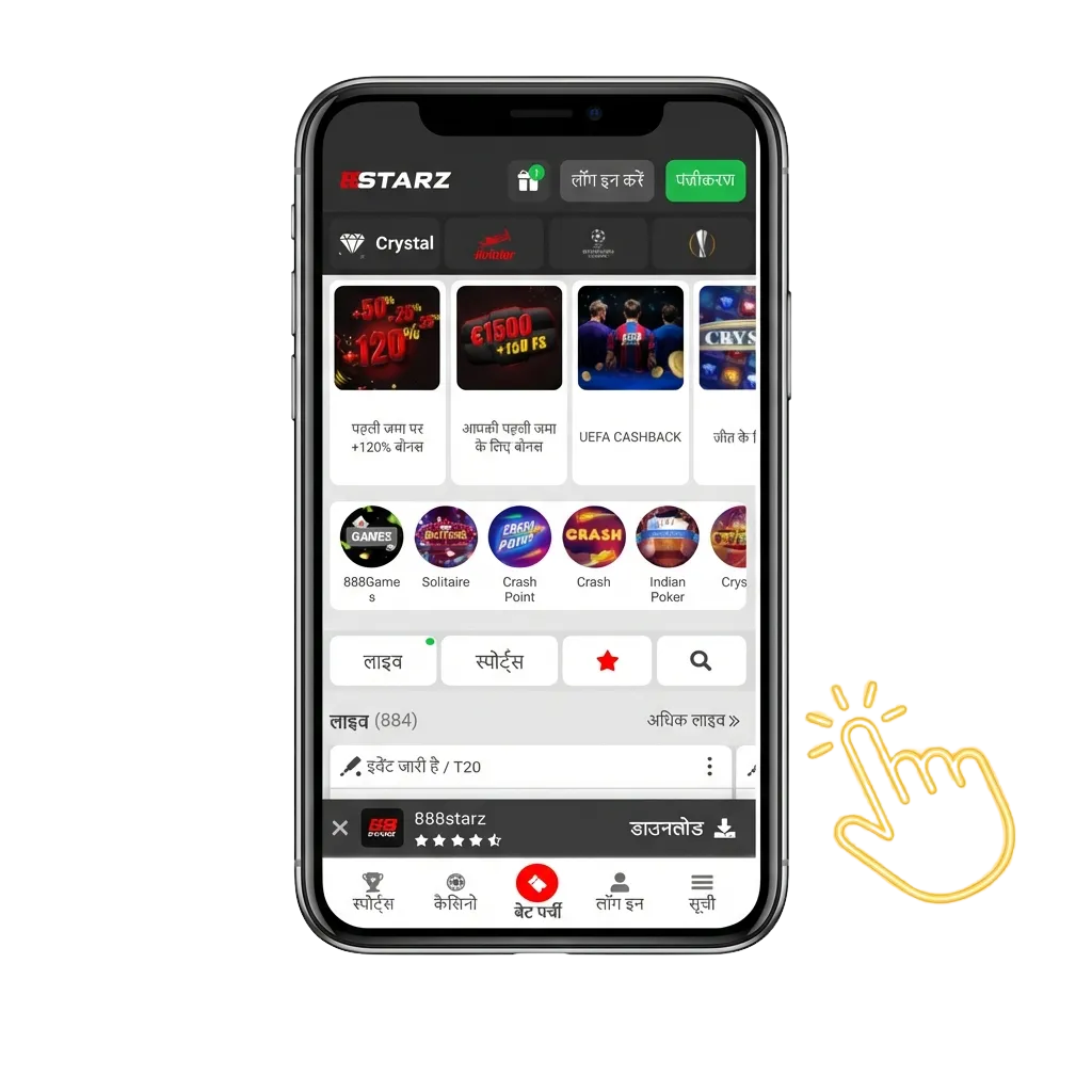 Open 888starz.com on your phone or tap the download link on our site.